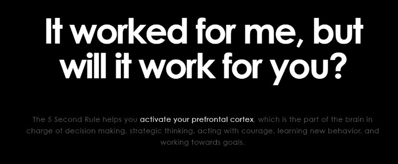 Aquí tienes un ejemplo de la página de la escritora y conferenciante Mel Robbins. En ella explica de una forma muy sencilla que su Regla de los 5 segundos está respaldada por hallazgos científicos sobre el cerebro.