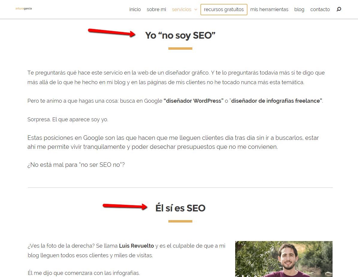 Lee esta parte de la página de ventas del servicio de SEO de Arturo García: