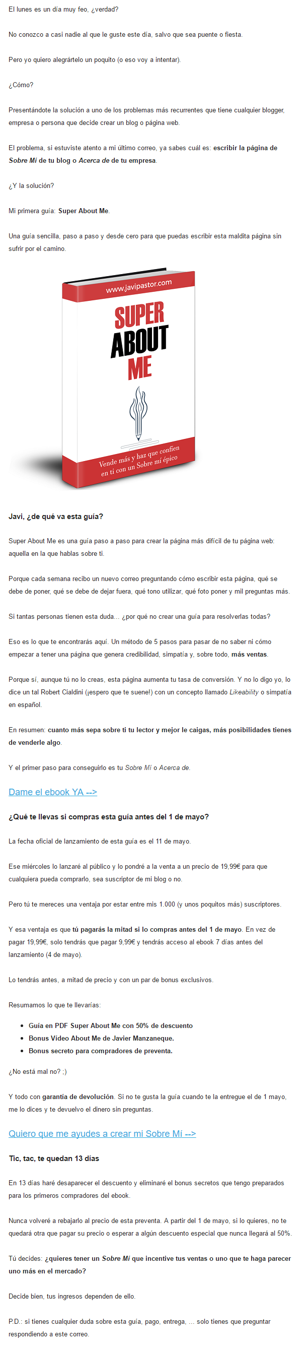¿Habría conseguido más ventas con una página de ventas más larga? Lo dudo, lo que había que contar estaba contado en el email y el que llegaba a la página de ventas iba a lo que iba.