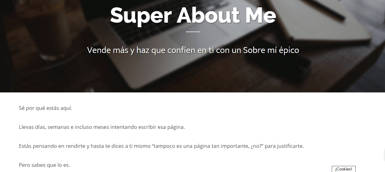Por ese motivo la landing fue muy corta y, aunque no te la puedo poner porque al migrar desde la otra web ha desaparecido, te recreo aquí el contenido de la misma para que te hagas una idea: