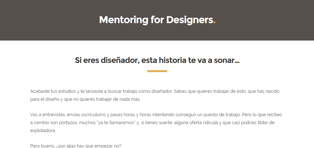 La página del servicio Mentoring for Designers de Arturo García tiene casi 3.000 palabras y, sinceramente, creo que no le sobra ni una coma.